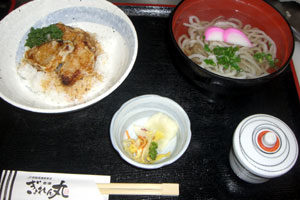 「日南魚うどん」と一緒に、かつお刺身を天麩羅にした「かつお丼」をセットにして提供します。