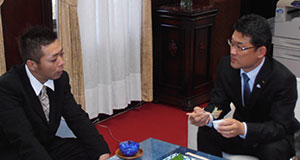 成24年12月に東京で開催された全国漁業協同組合連合会主催「第13回シーフード料理コンクール」において宮崎調理製菓専門学校 塩田和裕さんが全国3790通の応募の中から最優秀賞の農林水産大臣賞を受賞したことから、12月27日、県知事へ受賞報告を行った。 今回の最優秀賞受賞は3年連続の快挙であり、知事からも3連覇メニューとしてのレストランでの提供してはどうかなどのアドバイスをいただいた。 塩田さんの受賞メニュー「真あじの生春巻き冷や汁風味」レシピは水産宮崎10月号に掲載されていますので、是非ご覧下さい。